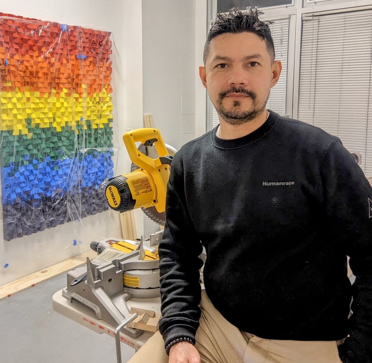 Colombian artist born in the city of Santa Marta Colombia has been exploring the Wood Wall Art technique for the last four years, to create works full of color, geometry and optical illusion. In this art he has found a way to interpret places, symbols and emotions.